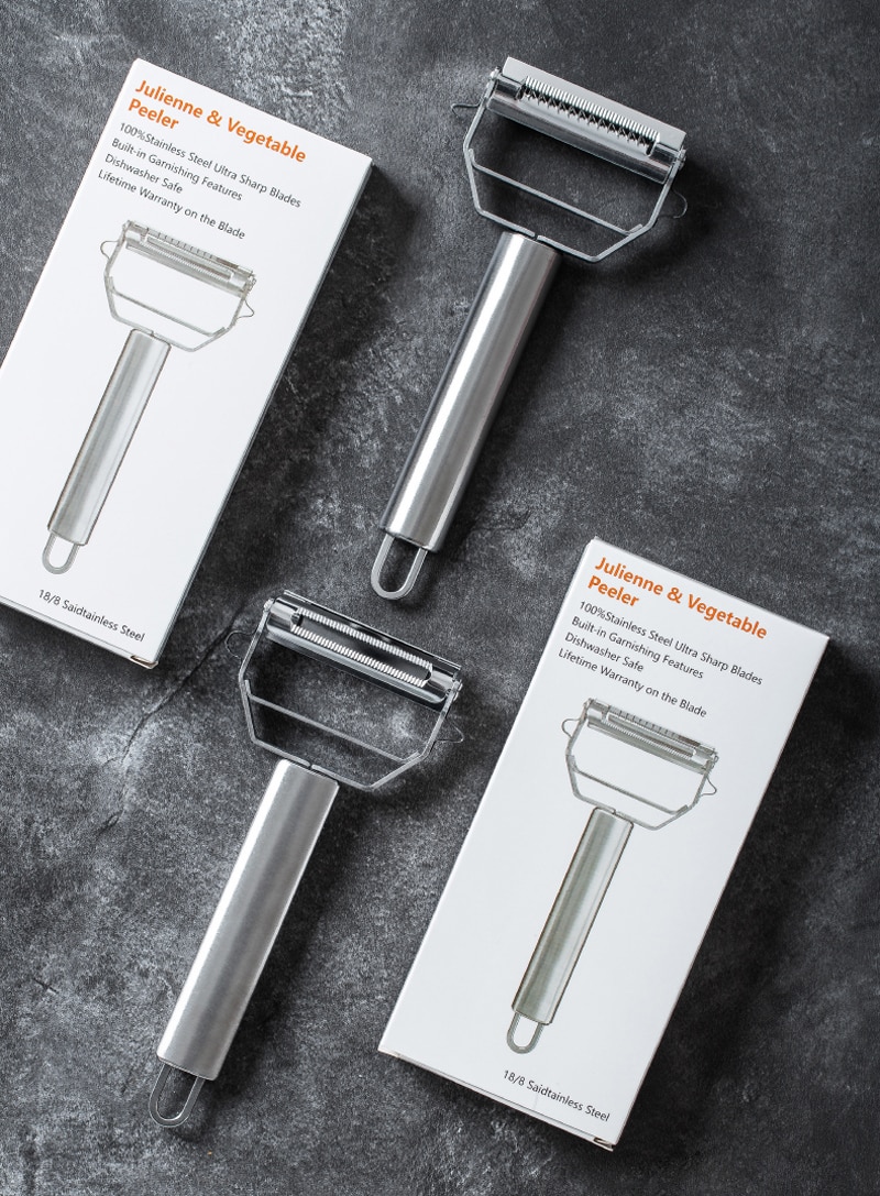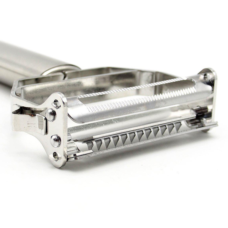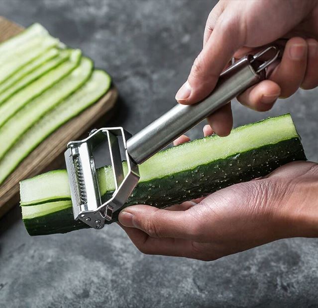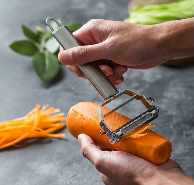 2 en 1 ayuda de pelar rápidamente las papas, verduras, frutas, etc. y también actúa como un cortador muy útil para nuestros alimentos.